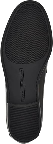 The Tommy Hilfiger Merise loafers are classic women's flat shoes designed for both work and casual weekend wear. Featuring a round-toe silhouette, these pull-on shoes are constructed from a durable polyurethane upper with a soft polyester lining for comfort. The design includes distinctive branded hardware and a kiltie-accented vamp that adds a sophisticated detail. Inside, a cushioned polyurethane insole provides support for all-day wear. The shoes have a low stacked heel and a rubber outsole for reliable traction and durability.