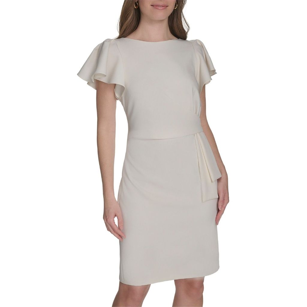 Tommy Hilfiger Womens Flounce Sleeve Side Drape Fully Lined Sheath Dress - Size 6 (White Ivy)