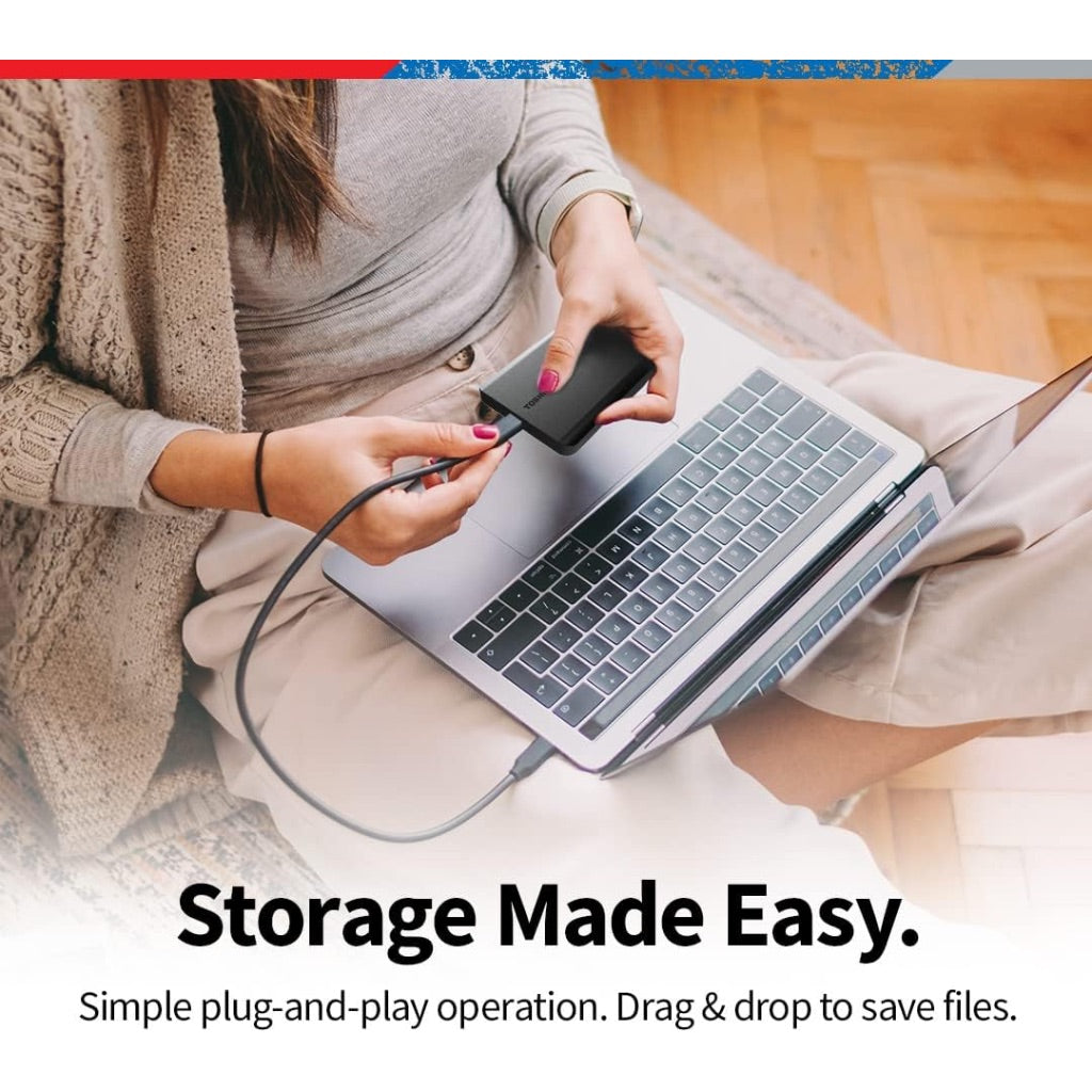 The Toshiba Canvio Basics 2TB Portable External Hard Drive is a compact and portable storage solution designed for easy expansion of computer storage capacity. Featuring a sleek profile with a matte, smudge-resistant finish, this external hard drive offers plug-and-play functionality with no software installation required. It connects via USB 3.0 interface while maintaining backward compatibility with USB 2.0 ports, and operates without needing an external AC power cord. The drive comes pre-formatted with NTFS file system for Windows computers, though reformatting is necessary for use with Mac systems. With 2TB of storage capacity, it provides substantial space for documents, photos, videos, music, and other digital files while maintaining excellent portability for on-the-go use. The device is designed for reliable performance and easy data transfer between computers. FEATURES