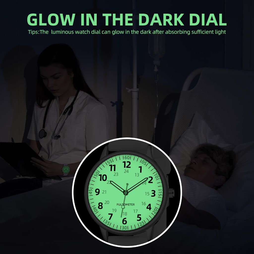 The TWOPTION Nurse Watch is a professional analog timepiece designed specifically for medical professionals, including nurses, doctors, and other healthcare workers. It features a clear, easy-to-read 38mm dial with Arabic numerals and a distinct second hand, essential for timing medical procedures and patient vitals. The watch includes night-illuminated markers for visibility during night shifts or in low-light environments. Constructed with a soft, comfortable silicone strap that is non-elastic and features 8 adjustment holes, it fits wrists from 15.2 cm to 20 cm. The watch is water-resistant to 3ATM (30 meters), making it suitable for hand washing and general clinical use. Its simple, functional, and fashionable design makes it a practical gift for nursing students, graduates, or professionals on occasions like birthdays, Christmas, Valentine's Day, or Nurse's Day.