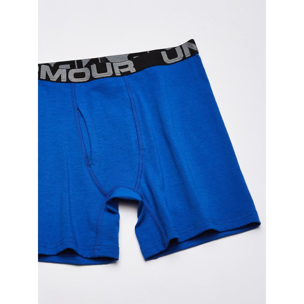 The Under Armour Boys Charged Stretch Jock Boxer Briefs are designed for young athletes seeking comfort and performance. This 4-pack features a fitted, slimmer athletic cut that provides a modern, streamlined silhouette. Constructed from a lightweight, smooth stretch fabric with 4-way stretch technology, these boxer briefs offer exceptional mobility and flexibility in all directions. The breathable fabric blend consists of 57% cotton, 38% polyester, and 5% spandex, ensuring all-day comfort and moisture-wicking properties to keep the wearer dry. The antimicrobial treatment helps prevent odor. Available in Ultra Blue, these boxer briefs are sized as Youth X-Large US, making them ideal for active boys who require reliable support and freedom of movement during sports and daily activities.