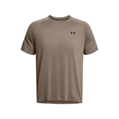 Under Armour UA Tech 2.0 Short Sleeve Tee - Men's T Shirt : Taupe Dusk/Black : ; Bring a technological advantage to your training with the Under Armour Tech Short Sleeve Tee. Featuring a classic crew neckline, short raglan sleeves, shaped hem, and branding on front upper-left, while its loose fit offers a generous, full cut for ultimate comfort and unrestricted mobility. ; All Under Armour Apparel features a tagless design or tear-away tag with no left-over pieces. ; UA Tech fabric is extremely lightweight with an ultrasoft hand and four-way stretch capability. ; Moisture Transport System wicks perspiration away from the body and towards the surface where it can evaporate. ; 100% polyester. ; Machine wash cold, tumble dry low. ; Imported. | Under Armour UA Tech 2.0 Short Sleeve T-Shirts Men's T Shirt Taupe Dusk/Black : XL, Polyester.