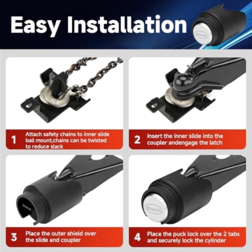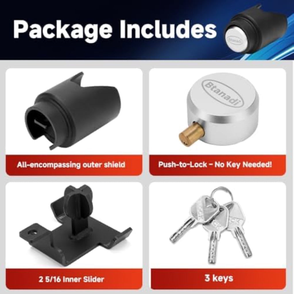 Btanadi Trailer Lock Fits 2" Coupler, Upgraded Heavy-Duty Steel Hitch Lock, Anti-Theft & Pry-Resistant - Silver