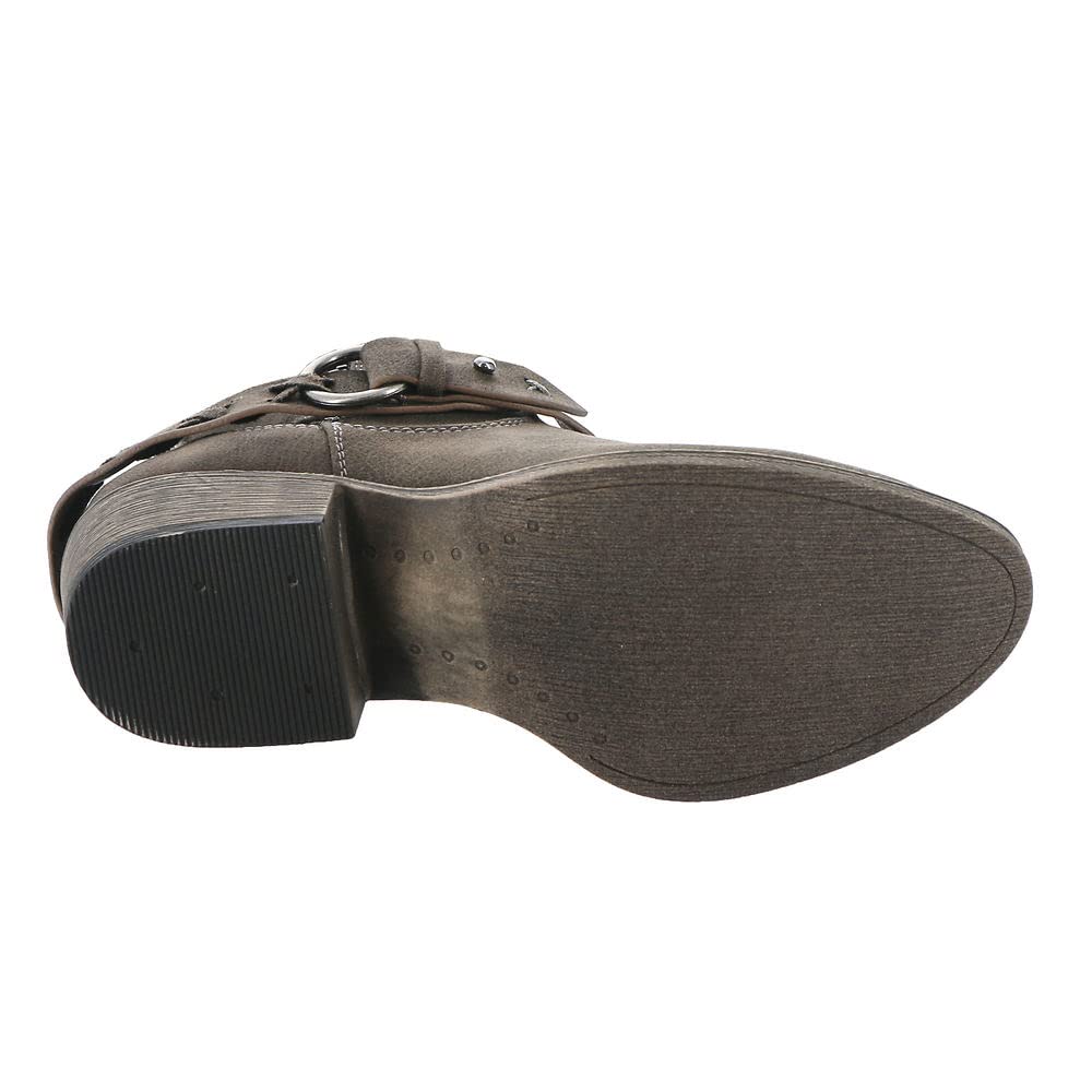 The Very G Merlot Women's Riding Boot features a sophisticated knee-high design crafted from faux leather. These boots include distinctive harness detailing for an authentic equestrian look. A convenient zip closure provides easy on and off access. The interior features a lightly cushioned footbed for enhanced comfort during wear. With a 1-3/8 inch heel height, these riding boots offer a subtle lift while maintaining practicality. The dark taupe color provides a versatile neutral option that complements various outfits. This footwear combines classic riding boot styling with modern comfort features for everyday wear.