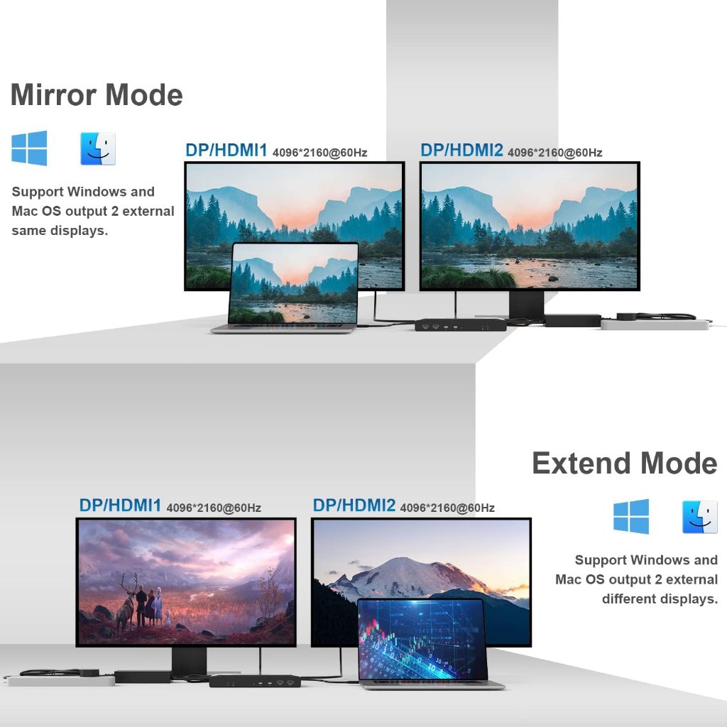 WAVLINK DisplayLink Universal Laptop Docking Station - Dual Monitors 5K/4K@60Hz, 100W Charging - Thunderbolt 4/3, USB-C/A - M1 M2 Mac, Windows, Chrome, Ubuntu - 2HDMI, 2DP, 6 USB Ports, 130W Power, LAN, Audio