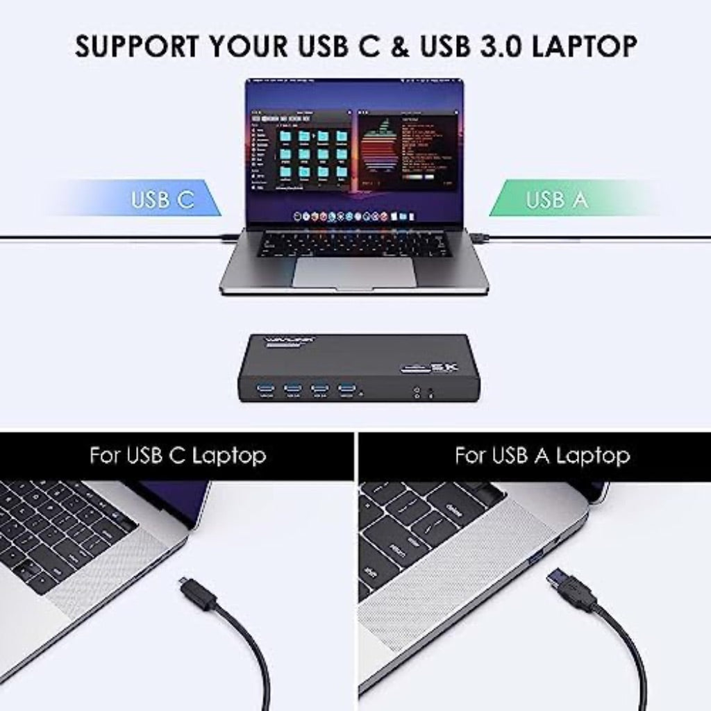 - Dual 4K / one 5K Display: USB C dock with 2x HDMI ports and 2x DisplayPort ports. This laptop docking station adapts to you, connect two screens up to 4K@60Hz for ultra smooth video( HDMI and DisplayPort port). Connect a screen via the DisplayPort port up to 5K@60Hz. Note: If enjoying 5K DisplayPort video output, please connect to a 5K TV/monitor