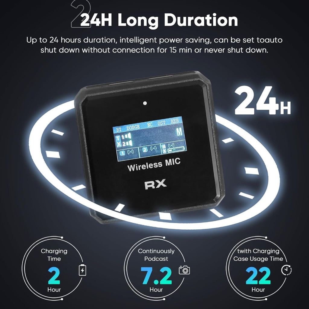 Wireless Lavalier Microphone, 100m Range, Bluetooth, 24-Hour Battery, Noise Cancellation