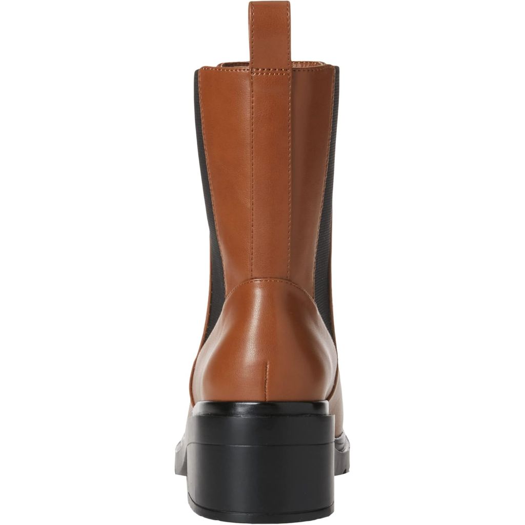 These women's Chelsea boots feature a chunky lug sole design with a chestnut brown faux leather upper. The boots have a tall shaft measuring 6.25 inches from heel to top, providing ankle coverage and support. Constructed with high-quality alternative leather materials, the boots feature a faux calfskin upper lined in faux leather for comfort. The pull-on design includes elastic gussets for easy entry and a back pull tab for convenience. The boots are equipped with a padded insole containing high-quality memory foam for enhanced comfort during wear. The contemporary chunky platform and heel provide a 2-inch lift with a flexible non-slip sole for stability and traction. The Chelsea boot style offers a versatile footwear option suitable for various casual and fashion occasions.