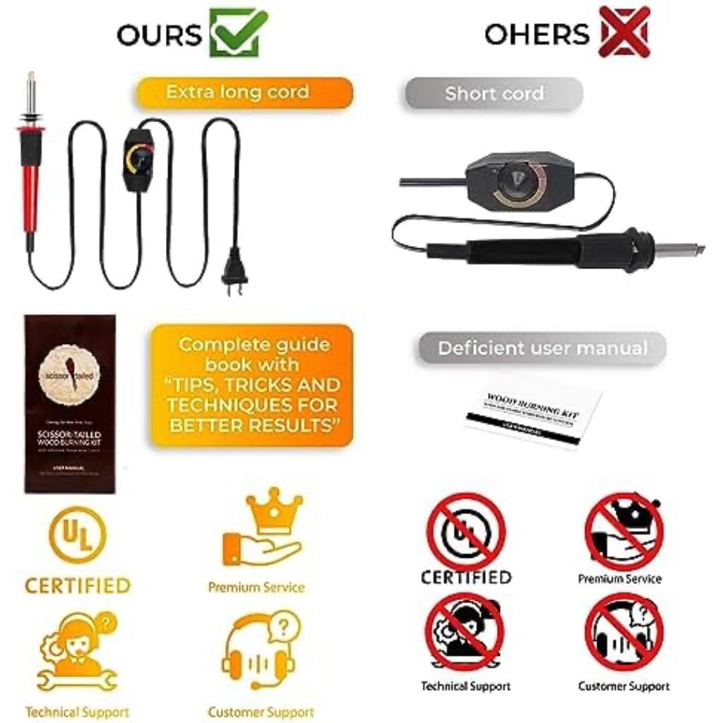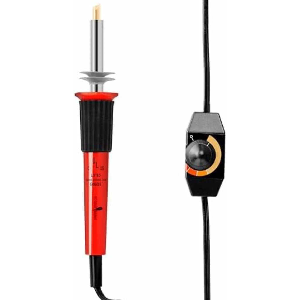 This 22-piece wood burning kit is a comprehensive pyrography toolset designed for artists and hobbyists. The kit features an adjustable temperature wood burning pen with a heat-resistant handle for comfortable use during extended crafting sessions. It includes 18 interchangeable tips suitable for various techniques including wood burning, soldering, embossing, carving, and stencil cutting. The pen heats quickly and maintains consistent temperature for precise work. Additional accessories include a metal stand for safe placement when hot, metallic alphabet and number stencils for creating consistent designs, and a complete guide book with techniques and tips for better results. The entire set is organized in a convenient storage case for easy organization and portability. This versatile tool can be used on multiple surfaces including wood, leather, and card materials, making it suitable for both beginners learning pyrography techniques and experienced crafters creating detailed artwork and designs.