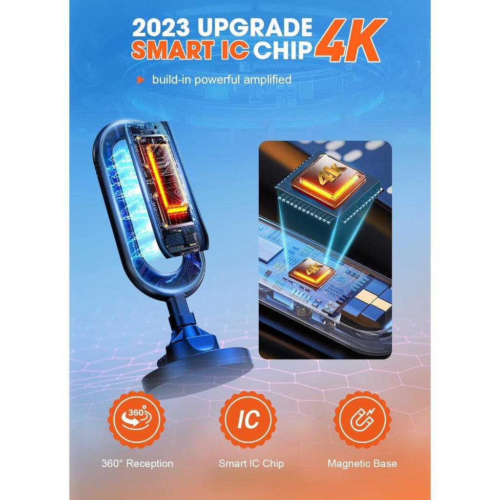 - 【Magnetic Base and 360° Signal Reception】: Are you tired of constantly adjusting your digital tv antenna for a HD clear signal? Our digital antenna is build in advanced 4K smart IC to provide 360° reception, ensuring a HD crystal clear picture no matter where it's installed in your home.With its magnetic base, installation is quick and easy. Simply attach it to any metal surface and start receiving TV signals in minutes.