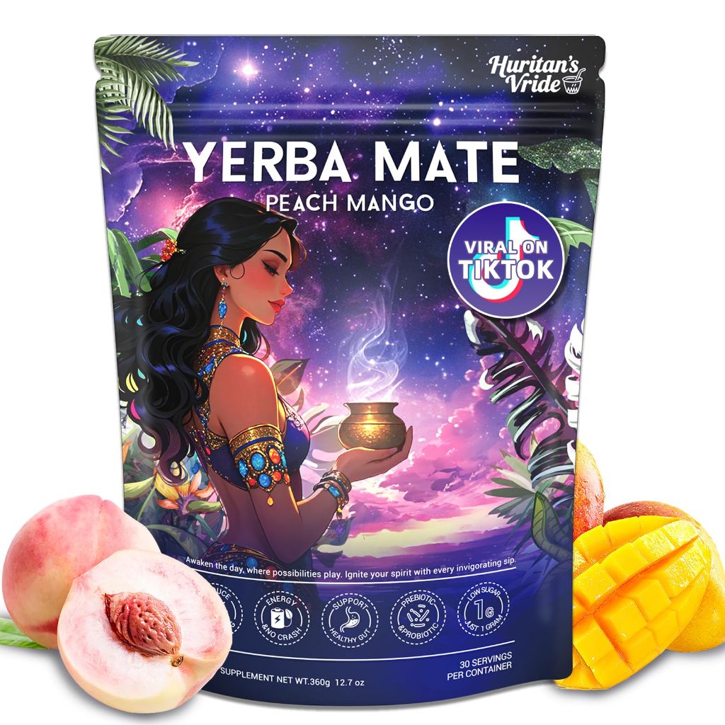 Yerba Mate Instant Tea Powder - Peach & mango flavored energy drink 12.7oz
