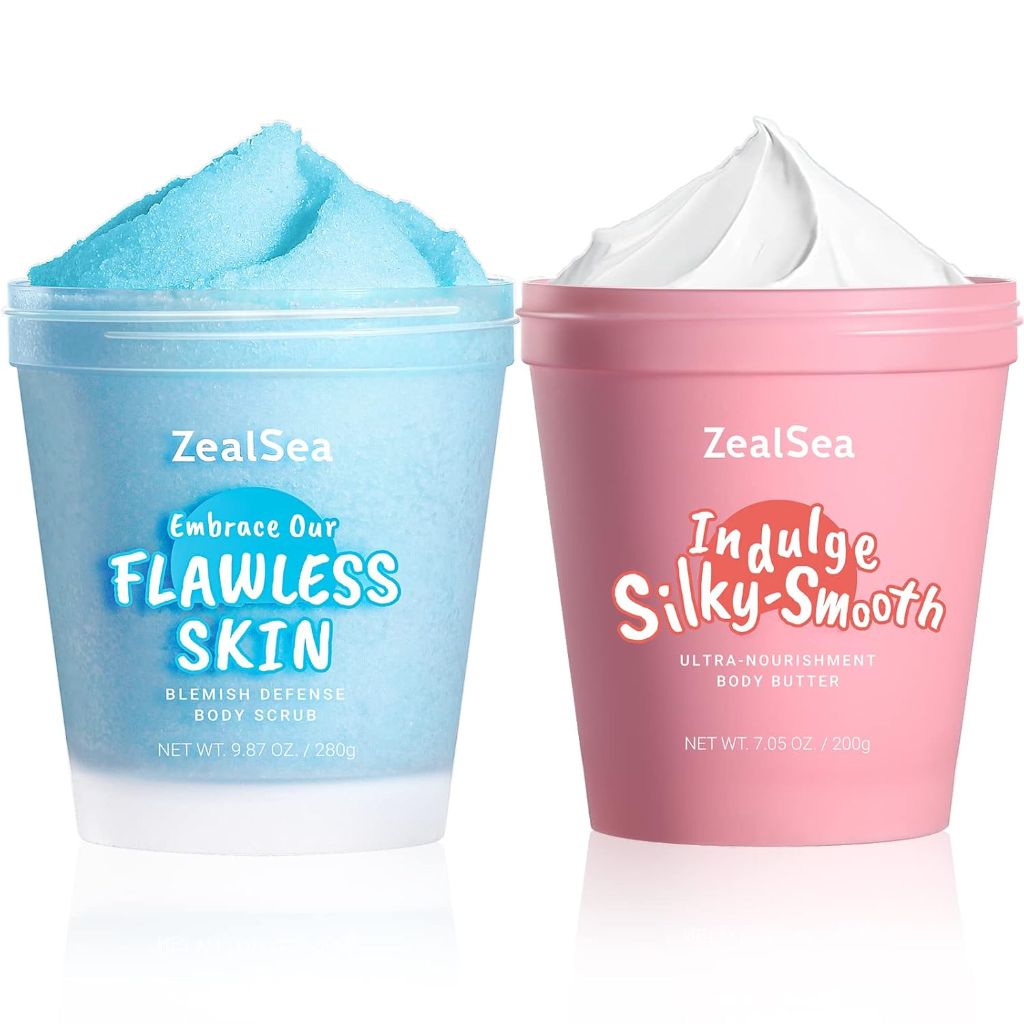 ZealSea Body Scrub & Body Butter Set: Dead Sea Salt Exfoliating Natural Body Scrub 9.88 Oz and Coconut Shea Body Butter 7.05 Oz